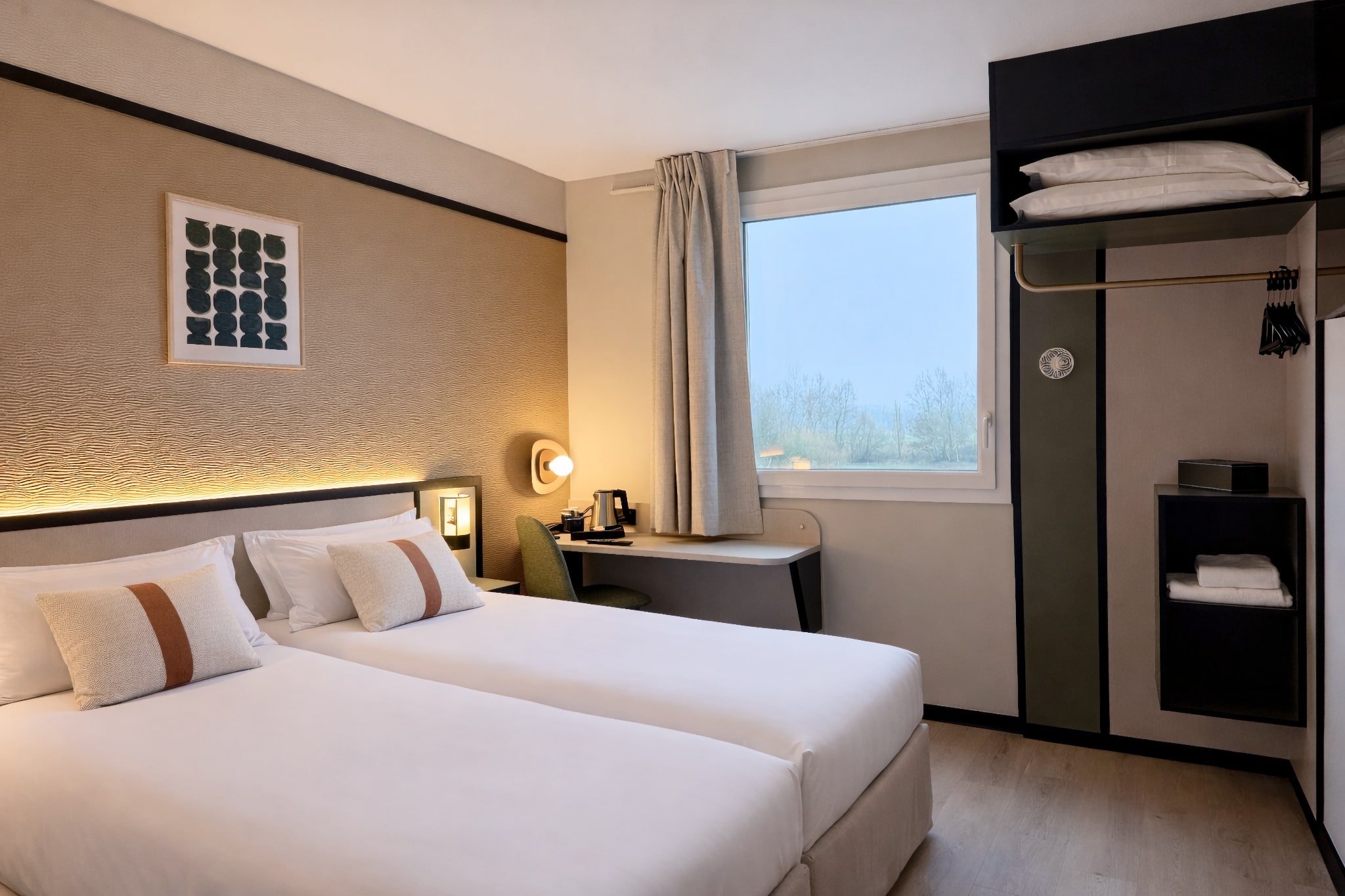 Au Brit Hotel Saint-Méen, votre chambre est pensée comme un refuge, un espace de détente serein.
