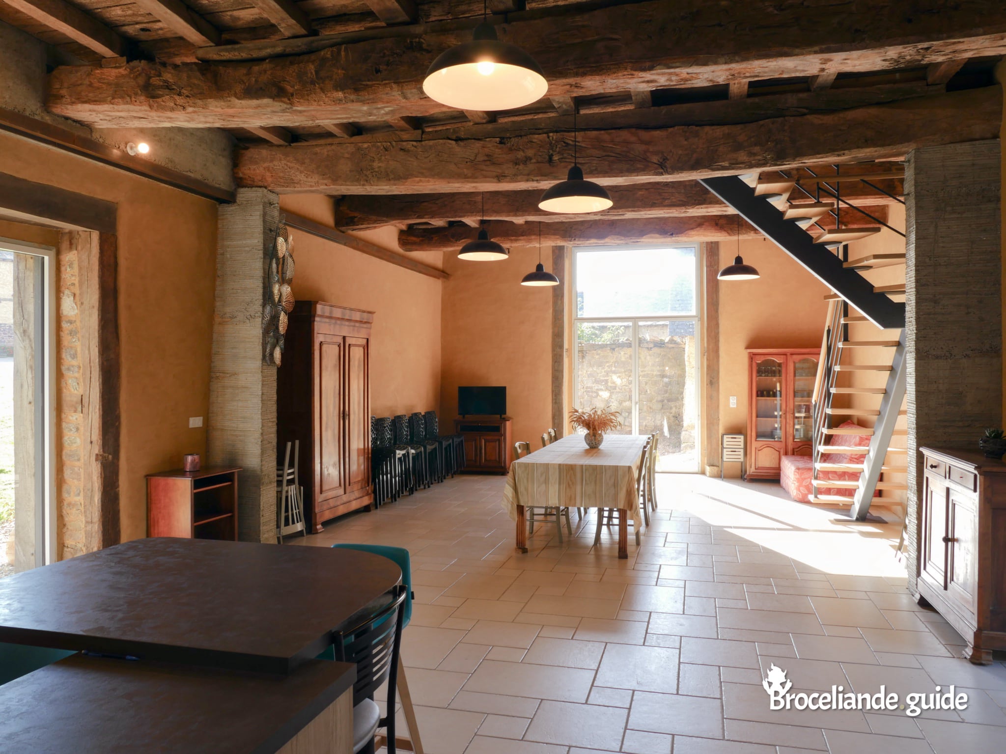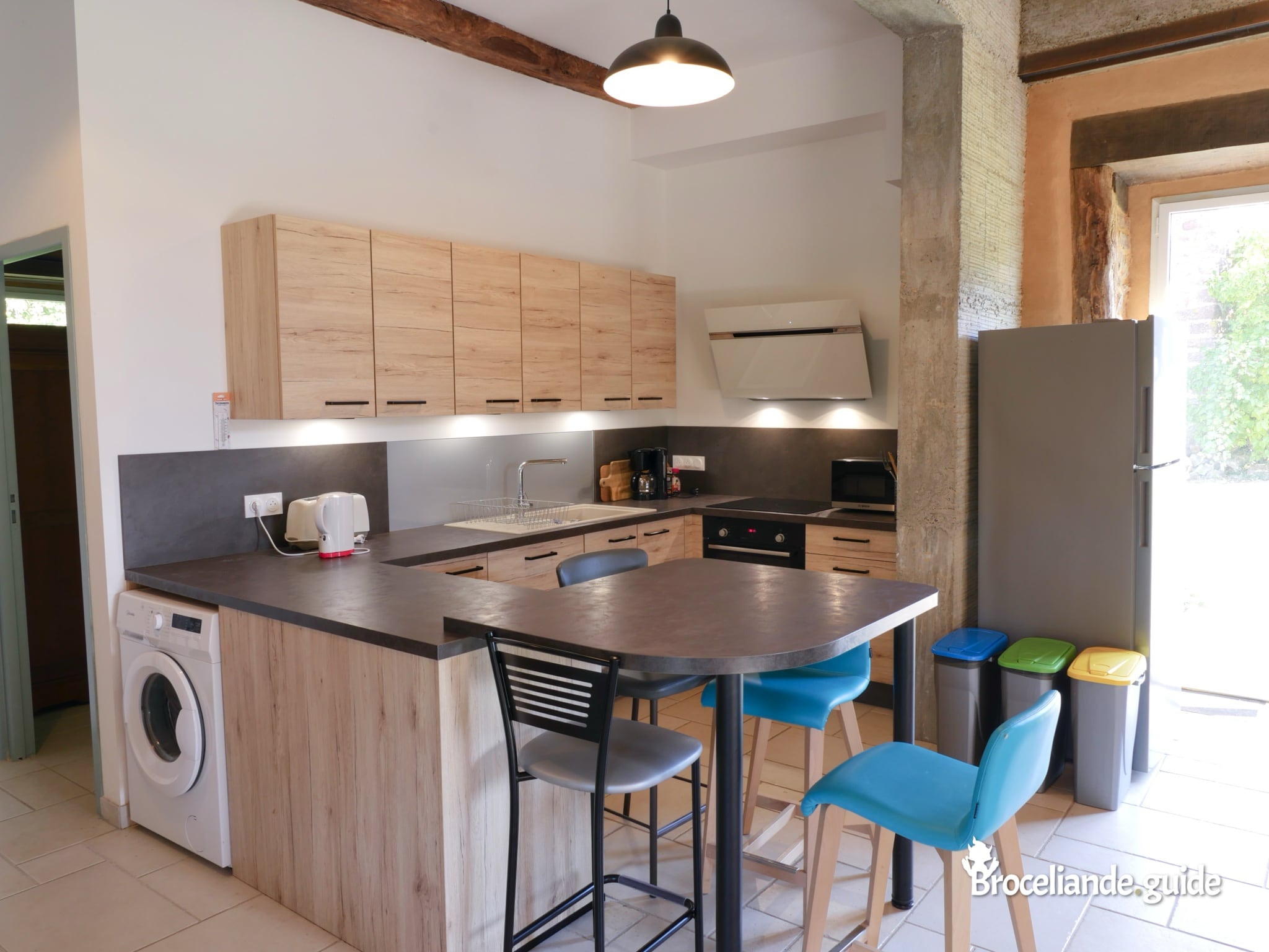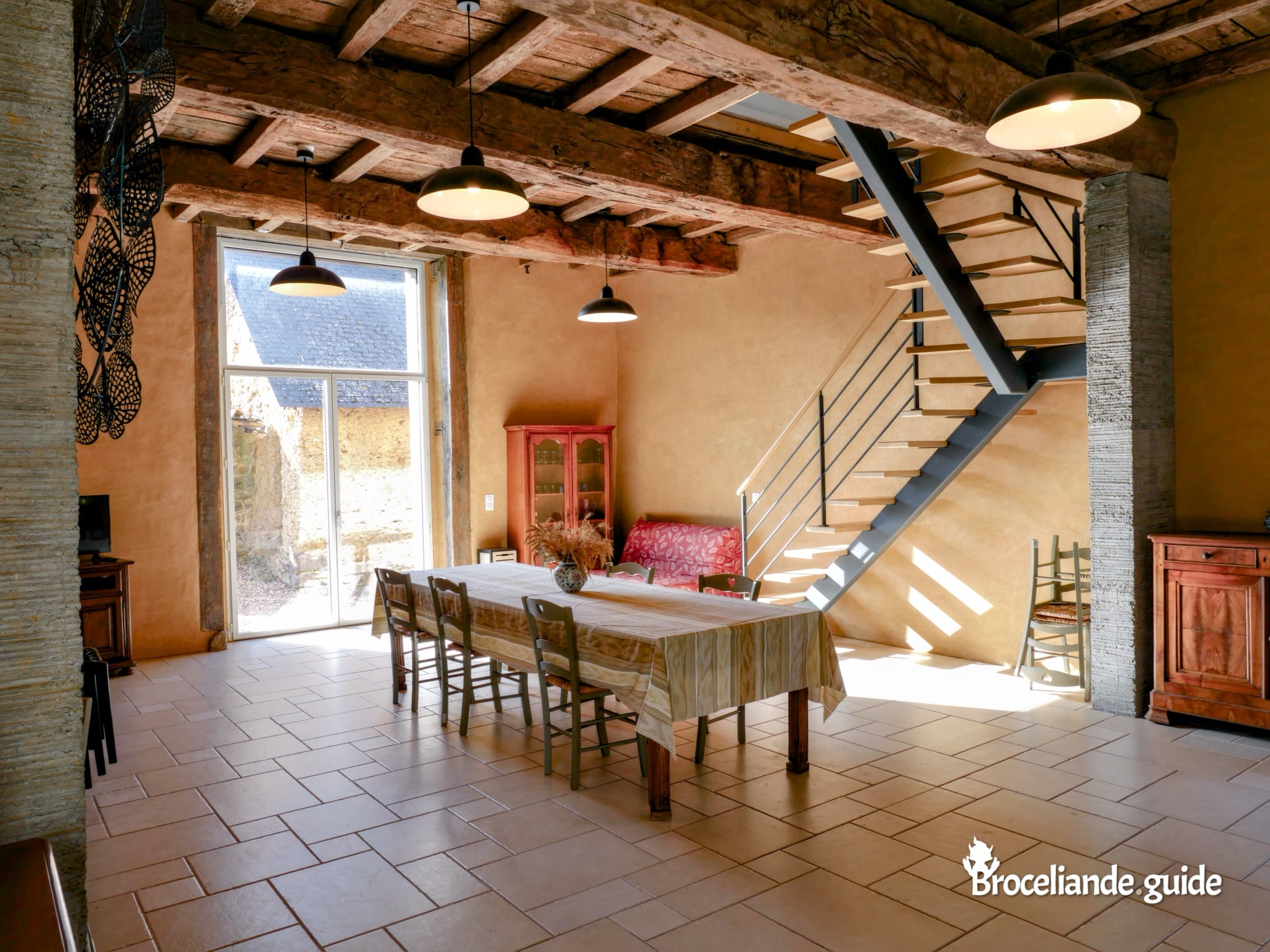 Cette grande bâtisse de caractère de 156 m2, entièrement restaurée avec des enduits à la terre et à la chaux, dégage une atmosphère chaleureuse, que vous veniez en petit groupe ou en solo. Grâce à ses volumes généreux et à ses espaces conviviaux, le gîte La Métairie constitue le lieu idéal pour des retrouvailles en famille, entre amis, ou pour un séjour professionnel au vert, entre Rennes et la forêt de Brocéliande.