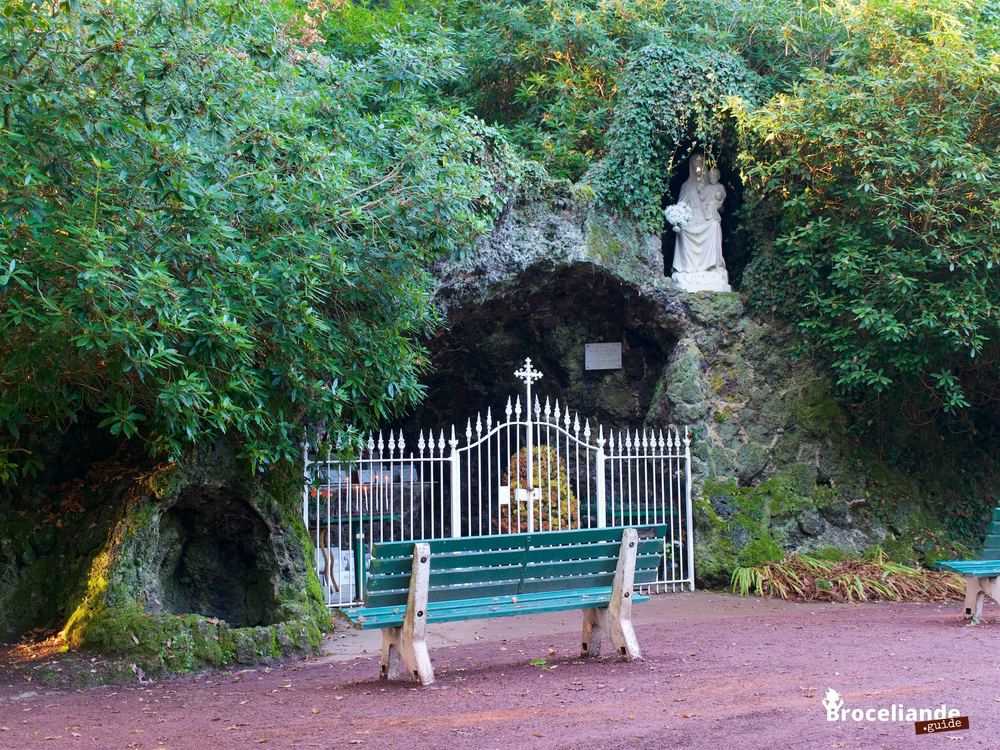 Conçue sur le modèle de la « grotte de Lourdes » avec des résidus des hauts fourneaux (laitier), elle fût construite en 1884, l’année de l’arrêt définitif des forges de Paimpont. C’est un lieu agréable de recueillement et de promenade le long de l’étang.