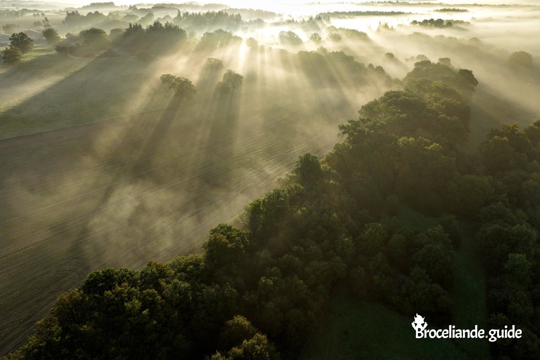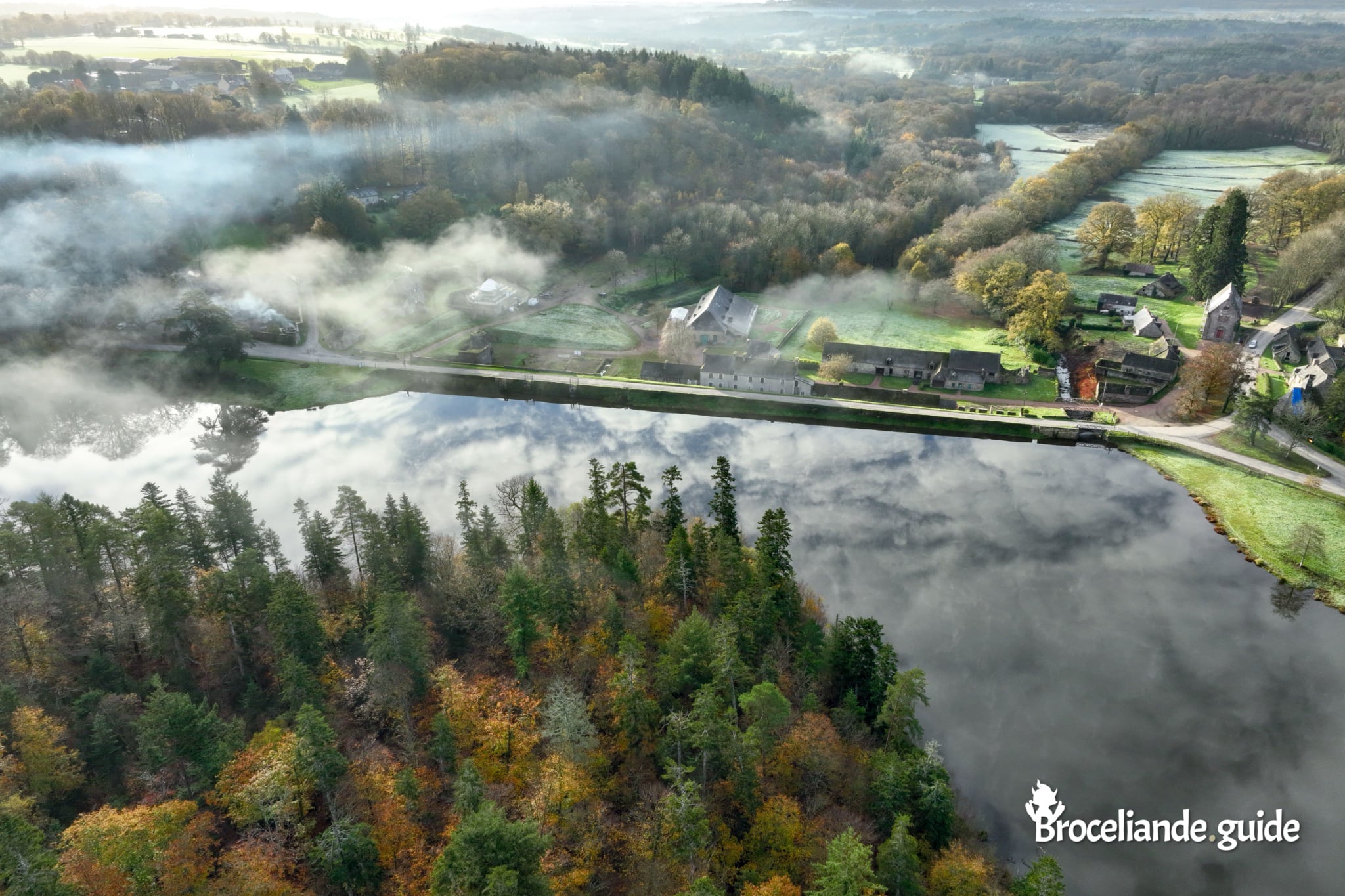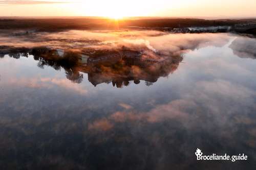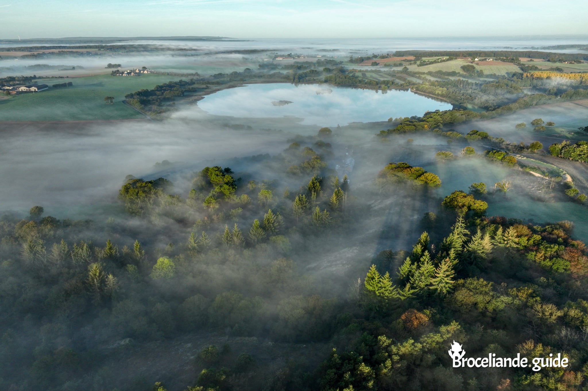 Ambiance matinale étrange au bord de l’étang Paimpont en Brocéliande.