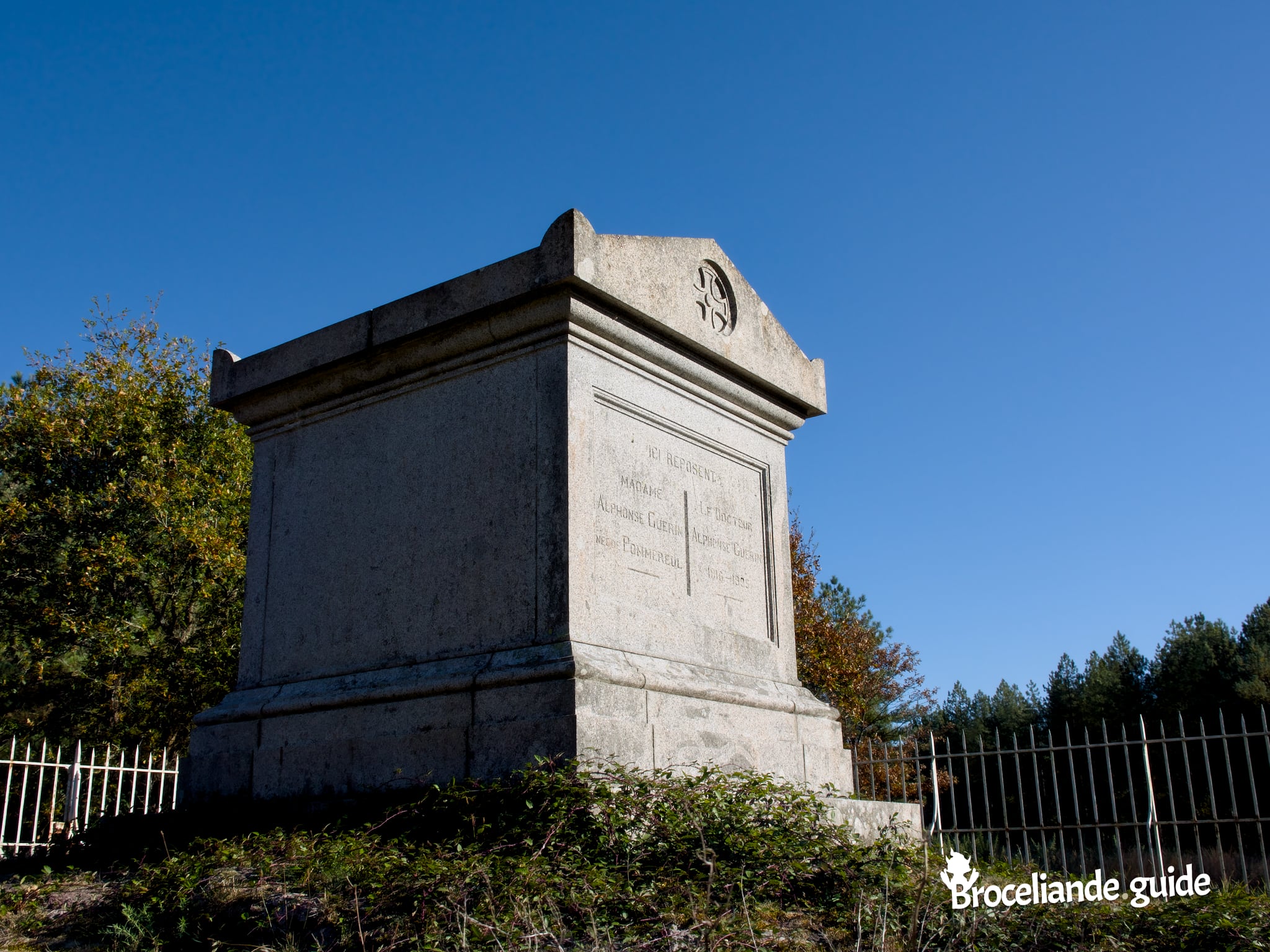 Célèbre pour avoir inventé le pansement ouaté et pour ses travaux sur la prévention des infections, Alphonse Guérin, né à Ploërmel en 1816, choisit ce lieu paisible au milieu d’une clairière entourée de bois de résineux et de feuillus en raison de ses liens familiaux avec la région et pour respecter les dernières volontés de son épouse.
