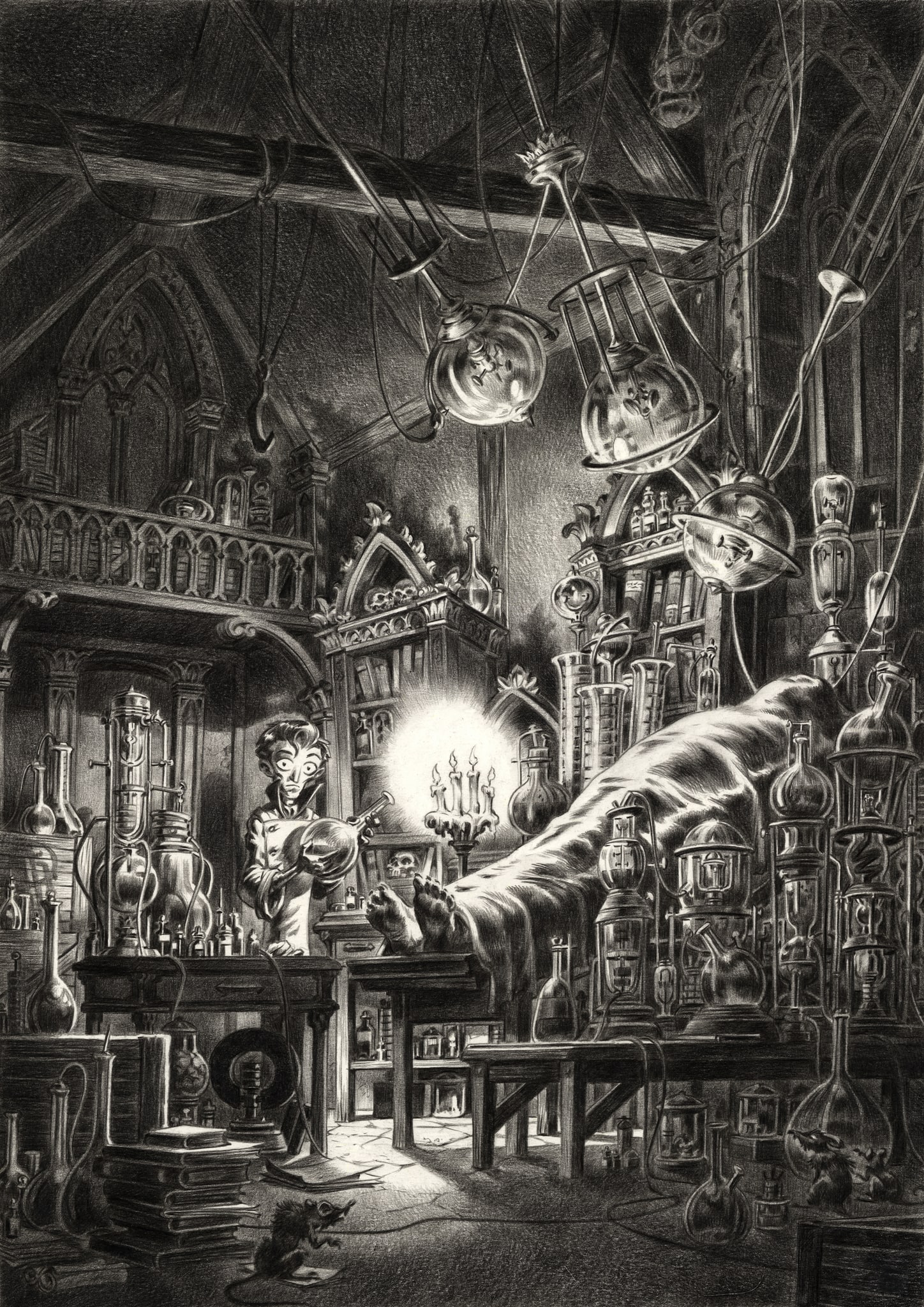 Pour cette exposition temporaire d’automne, Stan Manoukian installe un véritable laboratoire, consacré à ses monstres, ainsi qu’à son dernier ouvrage, l’adaptation de Frankenstein de Mary Sheilley. Une ambiance parfaite pour le retour des citrouilles en Brocéliande !